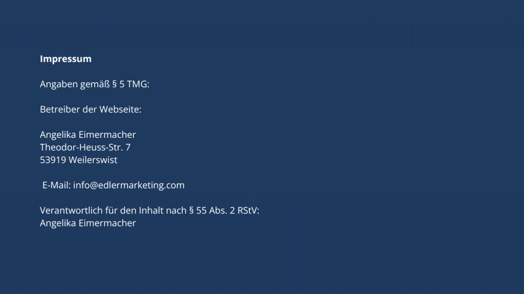 Das Impressum gilt ebenfalls für alle von mir betriebenen sozialen Netzwerke Facebook, Instagram, LinkedIn und TikTok.